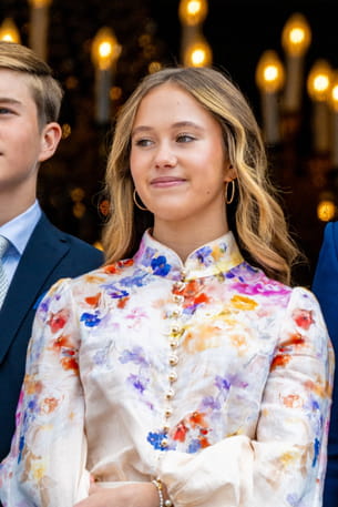 Ce lundi 26 mai, la princesse Josephine et le prince Vincent de Danemark étaient au balcon du palais d'Amalienborg pour saluer les Danois à l'occasion du 57e anniversaire du roi. L'occasion d'apercevoir de plus près la princesse Josephine qui a bien grandi. Âgée de 14 ans. la jeune fille se tenait auprès de sa mère, la reine Mary. Souriante, elle avait choisi de porter une délicate blouse fleurie particulièrement élégante de la marque Zimmermann. Cette pièce à col mao est absolument parfaite pour la saison printemps-été !