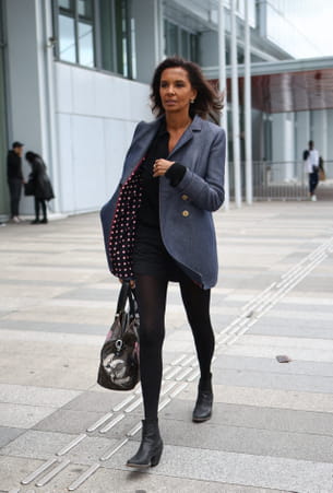 A Paris, Karine Le Marchand a été aperçue avec un look urbain et chic. Elle portait un ensemble noir avec des collants opaques, qui était rehaussé par une veste de blazer bleue dotée d'une doublure à pois. Pour peaufiner sa tenue, elle avait choisi d'y ajouter des bottines noires à talons et un sac imprimé Louis Vuitton. Ce dernier était composé de dessins brodés comme des hirondelles. Un style élégant et dynamique alliant confort et sophistication. Parfait pour la mi-saison, qu'il s'agisse du printemps ou de l'automne !