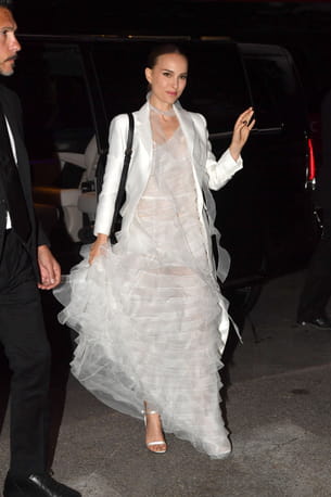 Natalie Portman était également conviée au défilé Dior Croisière à Rome. L'actrice américaine avait opté pour une robe semi-transparente à froufrous et une veste structurée, telle une princesse des temps modernes. C'est d'ailleurs pour cela qu'elle a fait sensation ! Cette coupe vaporeuse sublimait sa silhouette sans en faire trop, tandis que sa peau dorée était mise en valeur par le blanc immaculé de sa tenue. Avec ses sandales aux pieds, l'ambassadrice de la maison Dior était ravissante jusqu'au bout des ongles.