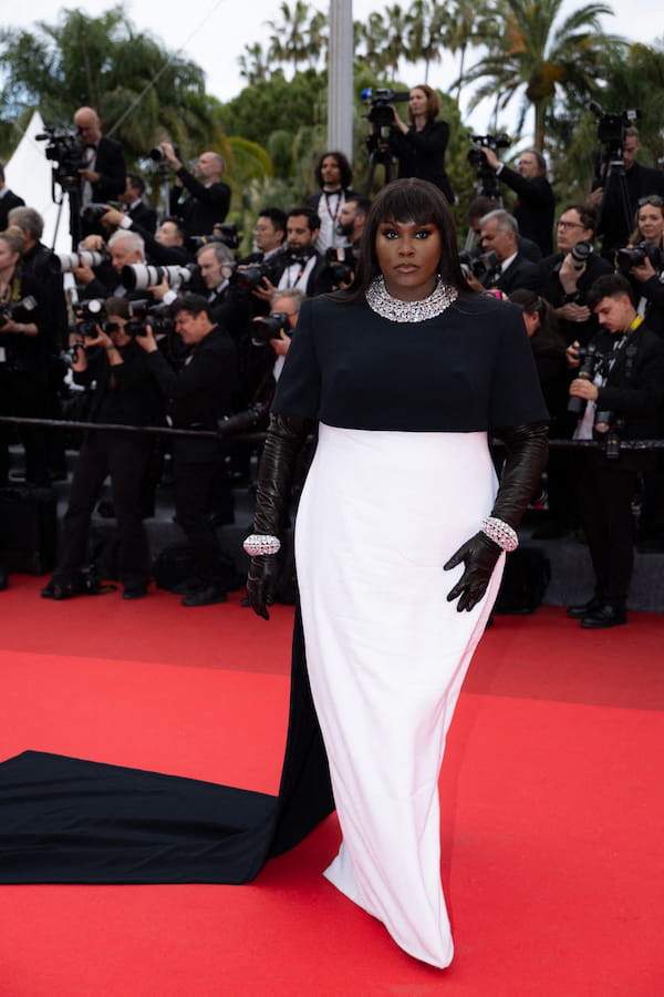 Présente sur le tapis rouge lors du sixième jour du festival de Cannes 2025, Yseult a fait une apparition raffinée à l'occasion de l'avant-première de Nouvelle Vague. Tous les regards étaient rivés sur sa robe bicolore noire et blanche de Givenchy. Avec sa coupe sirène et sa longue traîne tombant sur le sol, cette création ultra glamour flattait tout particulièrement la chanteuse. Et pour parfaire le tout, elle avait opté pour une paire d'escarpins à bout pointu et des gants en cuir arrivant au-dessus du coude. Sans oublier sa parure de bijoux étincelante qui illuminait son visage.