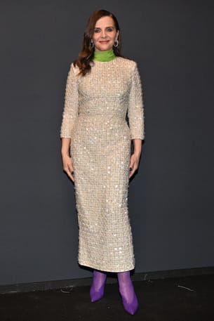 Juliette Binoche, présidente du jury de la 78e édition du festival de Cannes, était présente lors du dîner des prix Women In Motion 2025 le 18 mai dernier. Contre toute attente, elle a fait son apparition sur le photocall avec des accessoires délaissés : un collant violet en accord avec ses talons pointus et un foulard vert autour de son cou. En plus d'être très mode, ces derniers ont le pouvoir de rehausser sa robe blanche recouverte de strass et de refléter la lumière. On note également les créoles diamantées de l'actrice et son brushing de star.