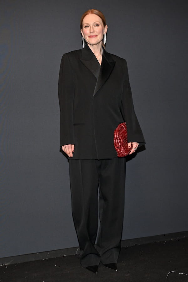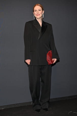 C'est une véritable masterclass de chic et d'élégance que nous a offert Julianne Moore à l'occasion de la soirée Kering Women in Motion qui met à l'honneur les femmes dans le cinéma. Vêtue d'un sublime ensemble de costume à la coupe large composé d'une veste fermée et d'un pantalon large, la célèbre rousse était stupéfiante. Ce qu'on aime ? La coupe oversize de la pièce qui ajoute un côté plus masculin et moderne à l'ensemble. Enfin, elle a terminé sa silhouette en misant sur des souliers pointus, une pochette rouge Bottega Veneta et des bijoux Boucheron.