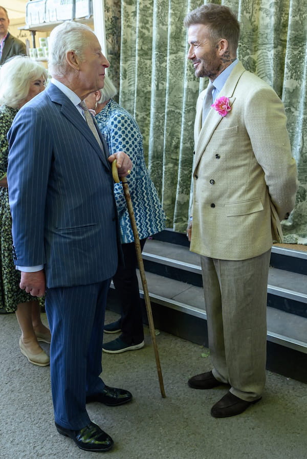 Pour sa nouvelle apparition au Chelsea Flower Show 2025 à Londres, David Beckham s'est distinguée dans un superbe ensemble de tailleur beige. La base de son look ? Une veste de blazer en lin à double boutonnage, ornée de la nouvelle rose "King's Rose", et un pantalon de costume ultra fluide et aérien. Une chemise à rayures, une cravate gris clair et des chaussures de ville marron foncé complétaient cette silhouette alliant un large camaïeu de tons neutres. Rien de mieux pour faire sensation pendant la saison printanière !