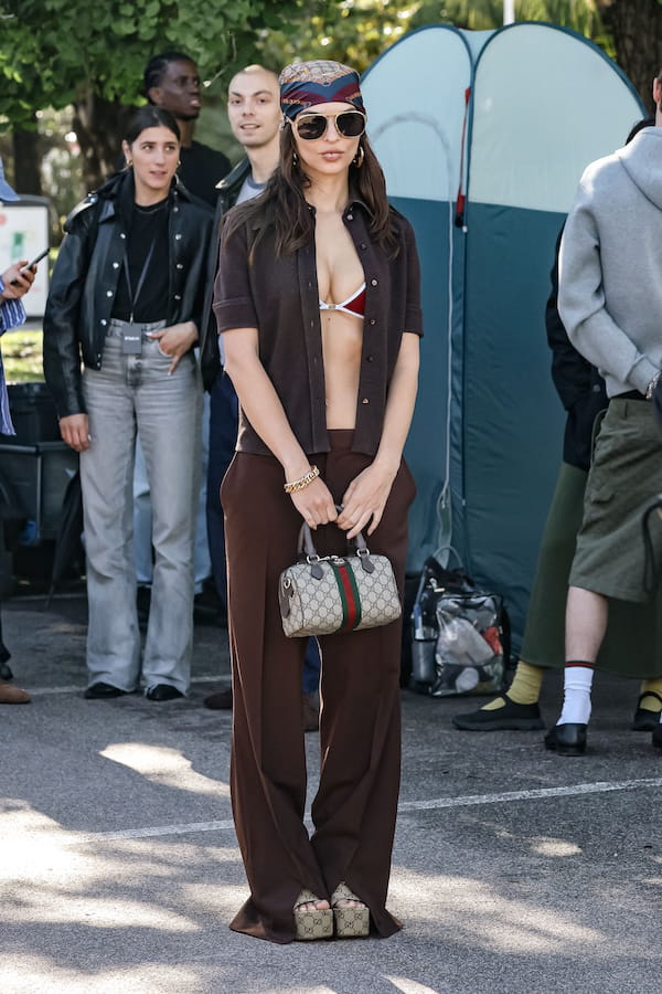 En full Gucci, Emily Ratajkowski adopte l'ensemble de l'été dans une couleur tendance