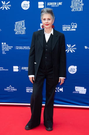 Ce mercredi 4 juin, Anouk Grinberg s'est rendue à la soirée d'ouverture du Festival du film de demain à Vierzon dans un ensemble d'inspiration masculine. Elle a arboré un costume carbone composé d'un blazer long et d'un pantalon évasé en bas, sublimé par une chemise blanche classique et un veston fermé. Pour continuer sur sa lancée, l'actrice française de 62 ans avait misé sur une épaisse paire de chaussures alors que des boucles d'oreilles rondes en perles rouges apportaient un parfait coup d'éclat à sa silhouette.