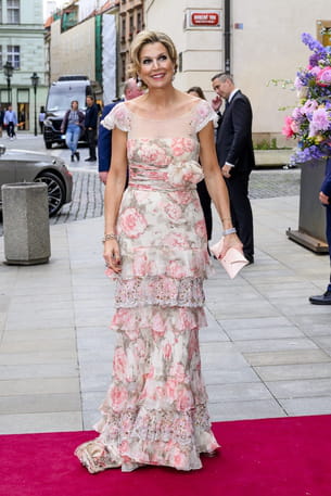 Tous les projecteurs étaient braqués sur Maxima des Pays-Bas, ce jeudi 5 juin, à l'occasion d'une soirée du ballet national néerlandais à Prague. Et pour cause, la souveraine était vêtue d'une longue robe fleurie ultra-délicate. Ses atouts principaux ? Elle était parsemée de volants au niveau de la jupe et affichait une taille froncée avec une fleur en 3D ainsi qu'un col en transparence brodé de perles. Une petite pochette rose pâle, d'imposantes boucles d'oreilles et des bracelets scintillants terminaient l'allure avec brio.