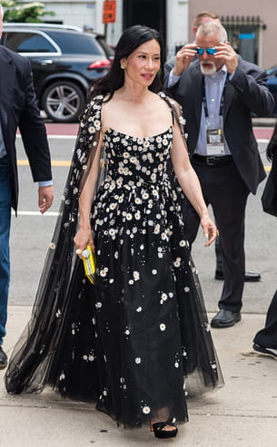C'est en véritable princesse que Lucy Liu a foulé le tapis rouge du Festival du film de Tribeca pour la première de Rosemead à New York. L'actrice avait opté pour une robe en tulle noire rehaussé de superbes marguerites blanches. Signée Monique Lhuillier, cette pièce possédait un corsage à encolure carrée et une jupe ample en tulle noir. Sur les épaules, elle portait une cape transparente assortie, également brodée, ajoutant une touche de féérie à sa tenue. Aux pieds, la star avait enfilé des escarpins Santoni noirs à talons hauts.