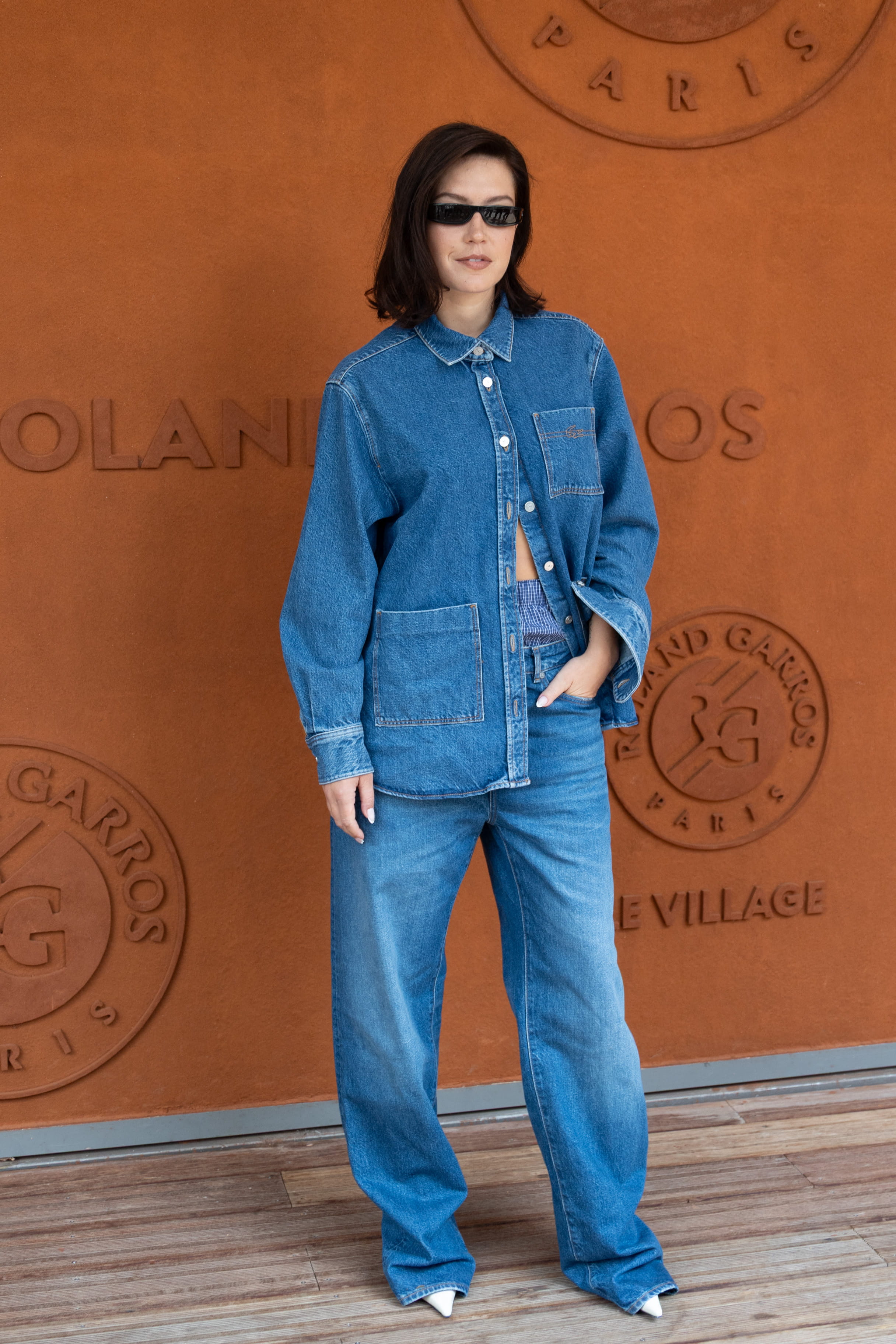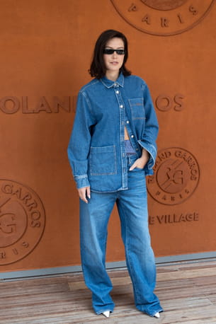 Adèle Exarchopoulos a adopté un total look jean à Roland-Garros, affichant une allure à la fois décontractée et pointue. Elle a mixé une chemise oversize en jean brut à poches plaquées avec un jean droit à la coupe loose, dans un esprit 90's revisité. La silhouette était rehaussée par des escarpins blancs à bout pointu, apportant une touche de sophistication. Lunettes noires étroites et cheveux lâchés complétaient ce look effortless, emblématique de son style cool et minimaliste. En voilà une tenue à la fois audacieuse et maîtrisée !