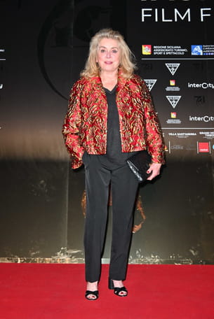 Catherine Deneuve incarnait l'élégance intemporelle avec ce look raffiné et sobre lors du 71e Festival du Film de Taormina en Sicile. Elle a opté pour un pantalon noir droit associé à un top noir fluide, deux basiques chics et discrets qui étaient mis en valeur par une veste brodée extravagante. Dans des tons rouges et dorés aux reflets chatoyants, cette pièce forte apportait une touche d'opulence à l'ensemble. Elle était accessoirisée d'une pochette matelassée classique noire et des sandales ouvertes noires à talons.