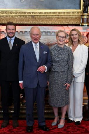 Au bras du roi Charles III, Meryl Streep rayonne dans une robe imprimée © Ratcliffe Chris/PA Photos/ABACA