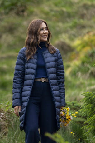 Le roi Frederik et la reine Mary du Danemark sont en visite officielle sur les îles Féroé. Le deuxième jour de leur déplacement, la reine Mary s'est présentée sur l'île la plus au sud de l'archipel. Ce jeudi 12 juin, elle a été photographiée dans un paysage montagneux et luxuriant où elle a pratiqué des activités sportives en famille. Pour l'occasion, elle a craqué sur un total look bleu marine qui allait parfaitement avec sa chevelure brune. Mais la pièce maitresse de sa tenue était sans aucun doute cette doudoune légère mi-longue. Idéale à porter pour les matinées fraiches de l'été !
