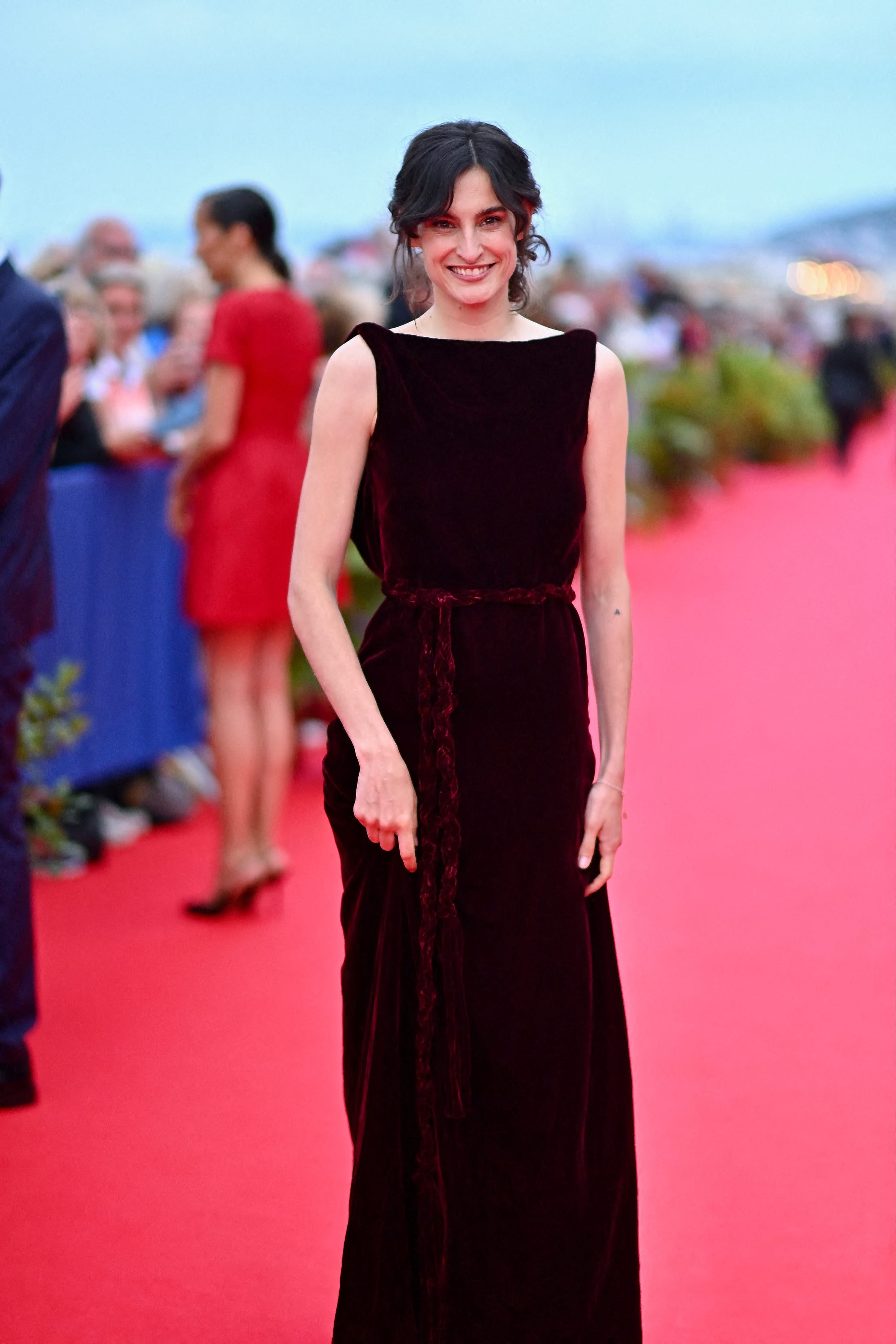 Sur le tapis rouge, Nine d'Urso incarnait l'élégance sobre et intemporelle. Elle avait enfilé une robe longue en velours bordeaux, à la coupe droite et minimaliste, qui sublimait sa silhouette élancée. La matière noble et la teinte profonde conféraient à l'ensemble une allure rétro-chic, rehaussée par une fine ceinture ton sur ton nouée à la taille. Sans bijoux ostentatoires, elle a misé sur la simplicité sophistiquée, prouvant qu'un style épuré pouvait aussi faire un maximum d'effet en soirée. Un pari réussi.