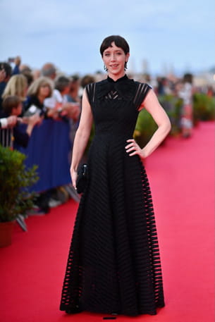 Le 14 juin dernier, Sara Giraudeau a posé devant les photographes à l'occasion du Festival du Film de Cabourg. Sur le tapis rouge, elle a misé sur une longue robe noire structurée, jouant sur la transparence et la texture. Le tissu à motifs ajourés apportait une touche graphique, tandis que le col haut et les épaules légèrement marquées conféraient une allure sculpturale. La coupe cintrée mettait en valeur sa silhouette naturellement. Côté accessoires, elle a jeté son dévolu sur une pochette noire et des boucles d'oreilles discrètes.