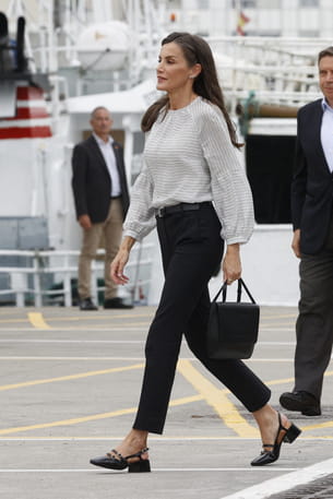 Le 17 juin, le roi Felipe VI et la reine Letizia d'Espagne ont visité le village maritime de Burela. Pour cette sortie officielle, Letizia d'Espagne n'a pas déçue ses admirateurs en dévoilant une tenue classique mais extrêmement stylée. En effet, les modeuses averties auront remarqué que la reine portait les chaussures les plus convoitées du moment. De la marque Sezane, il s'agissait de babies noir vernis doté d'un talon de 5 cm. Vendues au prix de 155 euros et très confortables, ces babies sont incontournables dès la mi-saison.
