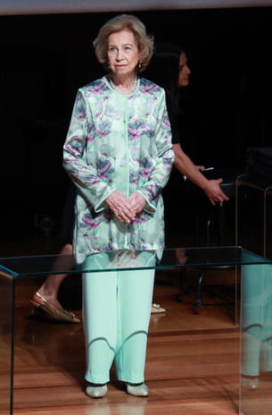 A chacune de ses apparitions, on se fait la même remarque : la reine Sofia d'Espagne ne fait pas du tout son âge. En effet, à 86 ans, elle sait comment paraitre plus jeune grâce à ses vêtements. Ici, elle affichait par exemple un look élégant et printanier, empreint de douceur et de raffinement. Elle portait une tunique longue en satin aux motifs floraux délicats, mêlant des teintes de vert d'eau, de rose et de violet. Son haut structuré était assorti à un pantalon fluide de couleur vert pastel, créant une silhouette harmonieuse et apaisante.