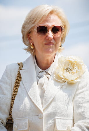 Le mardi 17 juin, la princesse Astrid s'est rendue à l'inauguration de la première centrale hydroélectrique à vortex de Belgique. Pour ce grand moment, elle avait choisi de porter un tailleur crème en tissu texturé à la coupe classique. Elle l'avait rehaussé d'un chemisier assorti noué au col. Une imposante fleur blanche était fixée sur son revers, apportant une touche sophistiquée et féminine à sa tenue. Enfin, ses lunettes de soleil à monture translucide complètaient harmonieusement ce look chic et parfaitement adapté à une sortie officielle.