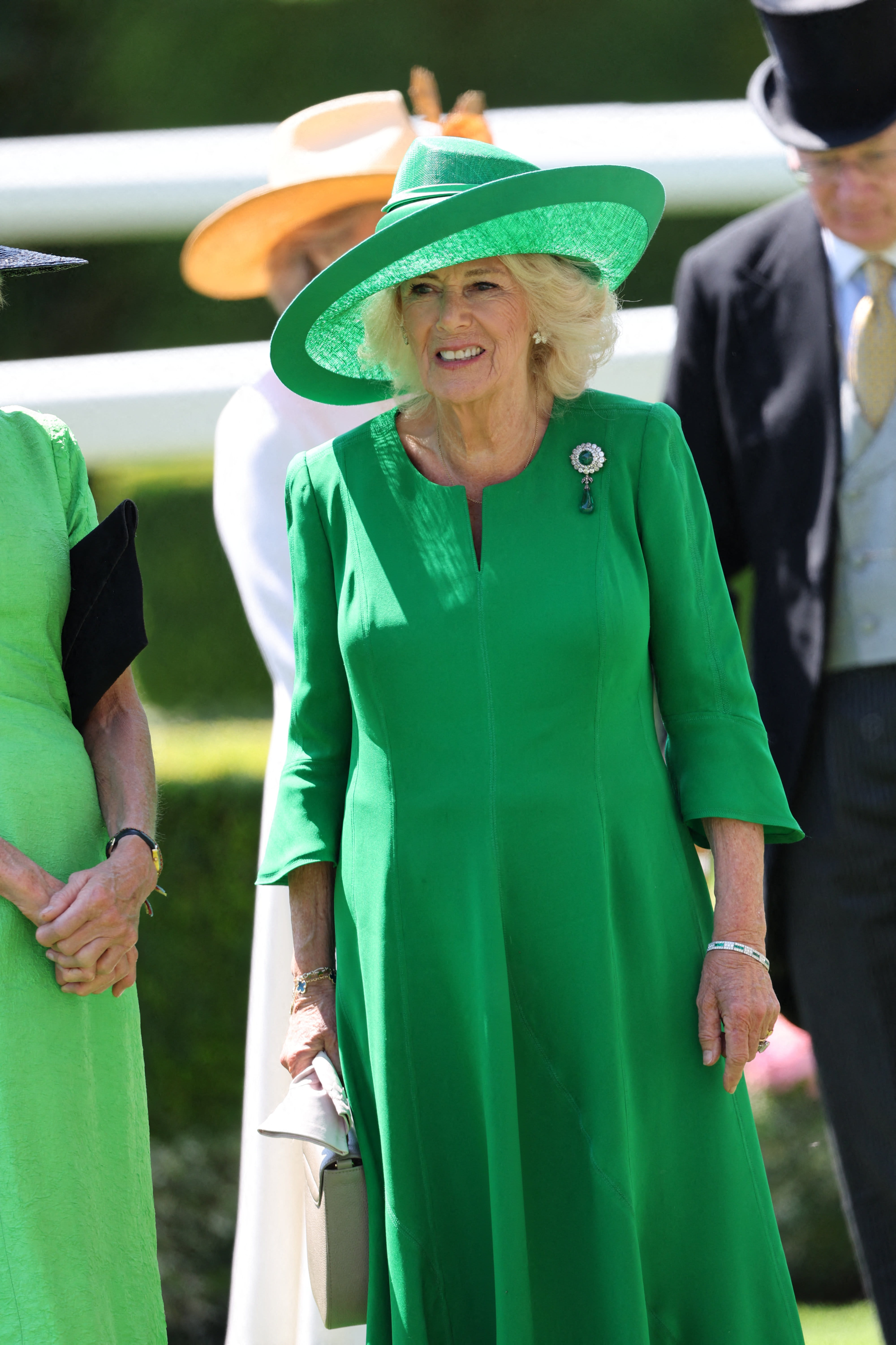 Le 18 juin, la reine Camilla était présente à la deuxième journée du Royal Ascot 2025, une compétition hippique particulièrement suivie par la famille royale. Parmi les têtes couronnées, Camilla a fait une belle apparition vêtue d'un total look vert. Elle était superbe dans cette robe et ce chapeau vert émeraude. Lumineuse et colorée. cette tenue a remporté tous les suffrages tant elle mettait en valeur le charme naturel de la reine. Et que dire de cet imposant chapeau qui était extrêmement raffiné grâce à sa bande de satin.
