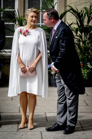 La grande-duchesse héritière Stéphanie s'est imposée une fois de plus comme une icône de style ce dimanche 22 juin. Aperçue aux côtés de son mari pour célébrer la fête nationale, elle a fait sensation dans une robe blanche agrémentée d'une cape qui arrivait à ses genoux. Une tenue simple, mais particulièrement efficace qui avait été accessoirisée par des broches en forme de fleurs multicolores, une minaudière rose pâle et une paire d'escarpins en daim allant parfaitement avec le reste. En un mot : sublimissime !