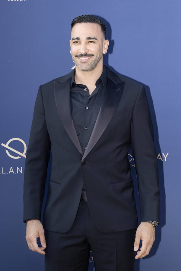 Adil Rami a de nouveau subjugué l'assemblée dans un smoking noir à l'occasion du gala de charité organisé par l'entraîneur de tennis Patrick Mouratoglou ce samedi 21 juin. Et pas n'importe lequel puisque l'ancien défenseur de l'équipe de France de football avait revêtu une création Giorgio Armani qui se composait d'une chemise noire surmontée d'une veste de blazer aux revers en satin et d'un pantalon de costume classique. Pour seul accessoire, il arborait à son poignet une montre Hublot au cadran doré et au bracelet noir.