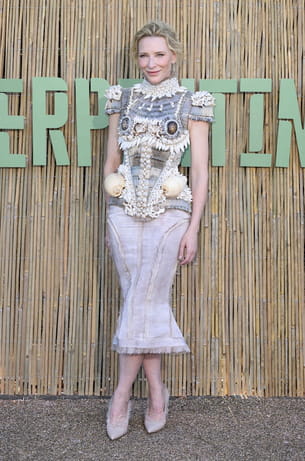 Cate Blanchett fait partie des invités ayant posé devant le photocall du Serpentine Summer Party 2025 à Londres ce mercredi 25 juin. Et si la célèbre actrice n'est pas passée inaperçue, c'est grâce à son corset orné de multiples coquillages de toutes tailles, issu de la collection automne 2025 de la styliste Dilara Findikoglu. La pièce au design sculptural était associée à une jupe sirène effilochée qui s'arrêtait en bas des genoux et à des escarpins pointus en cuir et tulle. Résultat ? Une silhouette mermaidcore parfaitement maîtrisée.