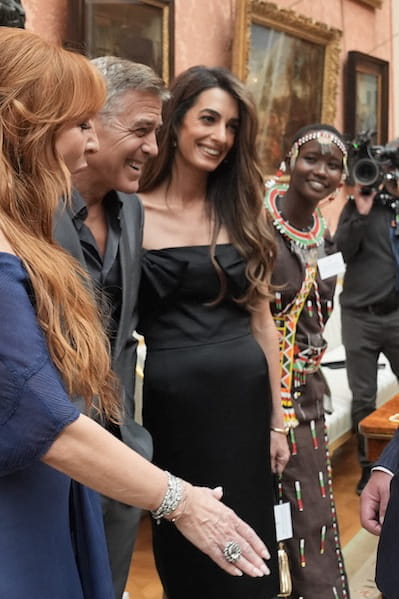 Amal Clooney fait une apparition saisissante dans une robe moulante à col Bardot