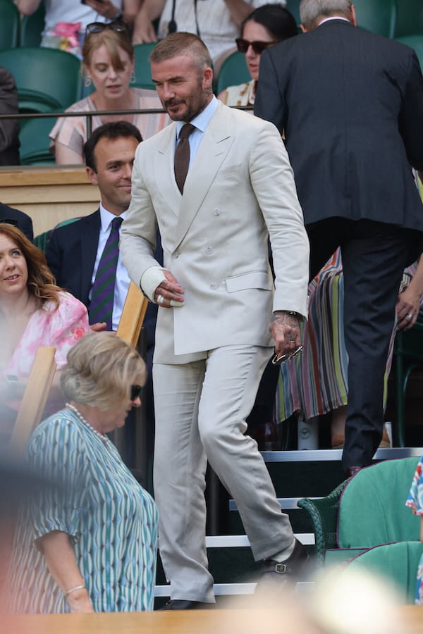 À Wimbledon, David Beckham adopte le costume incontournable du vestiaire estival