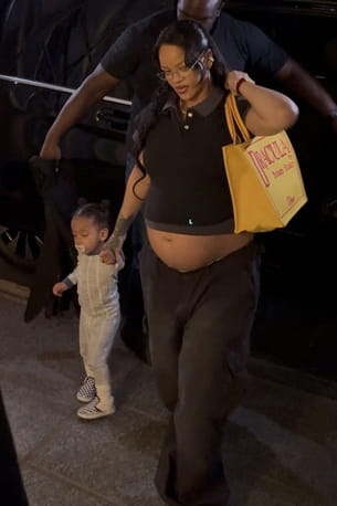 Ce mardi 1er juillet, Rihanna s'est affichée en compagnie de son fils à la sortie de son hôtel parisien. Une apparition rapide qui n'a pas manqué de taper dans l'œil des fashionistas. La raison ? Sa tenue de ville au summum du style et de la décontraction. Elle arborait en effet un polo court, aux extrémités contrastantes, qui dévoilait son ventre bien rond et un jean baggy gris. L'ensemble s'achève avec des ballerines, un sac cabas jaune signé Dior et un accessoire des années 2000 : des lunettes de vue à la monture ultra fine.