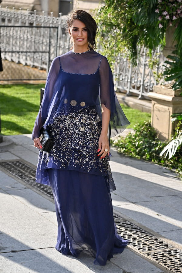 Penelope Cruz a enfilé ses plus beaux atours pour le tout premier bal d'été du Musée des Arts Décoratifs qui se tenait le 6 juillet dernier. Elle arborait un look très chic dans une robe bleu nuit signée Chanel se distinguant par des volants et des paillettes dorées. La cape intégrée, en mousseline transparente, ajoutait une touche de glamour et de modernité à la pièce. Le tout porté avec des boucles d'oreilles à perles, une bague en or ainsi qu'une pochette en cuir matelassé que l'actrice espagnole tenait à la main.