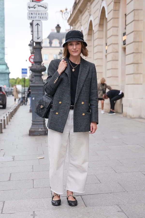De passage à Paris pour la semaine de la Haute Couture, Keira Knightley a fait honneur au style français avec une silhouette casual chic. L'actrice britannique s'est ainsi dévoilée dans un top noir surmonté d'un blazer à carreaux gris avec les boutons dorés et dans un jean blanc à la coupe large coupé au niveau des chevilles. Elle portait également un sac à main en cuir matelassé et des ballerines à brides agrémentées de pin's en or. L'accessoire cool ? Son bob en denim délavé de la maison Chanel qui lui confère une allure tendance.