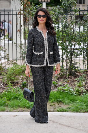 Penelope Cruz a répondu présent à l'invitation de Chanel pour assister à son défilé Haute Couture automne-hiver 2025-2026 qui se tenait le 8 juillet dernier. Elle avait revêtu pour l'occasion un superbe ensemble en tweed pailleté, attirant tous les regards devant le Grand Palais. Celui-ci était composé d'une veste droite au liseré blanc contrastant et d'un pantalon large tombant sur ses chaussures vernies. Un sac en cuir griffé de la maison au double C et des solaires œil-de-chat venaient également parachever l'allure de l'actrice.