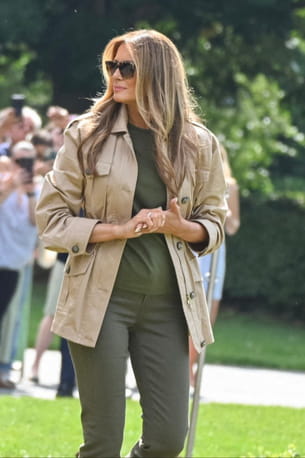 A chaque apparition, Melania Trump se fait remarquer ! Ici, elle arborait un style casual chic avec une veste saharienne beige, structurée par de grandes poches, associée à un t-shirt et un pantalon de couleur kaki. Cette palette de couleurs naturelles apportaient une touche élégante et discrète à son look. Des lunettes de soleil noires et imposantes complétaient l'ensemble pour notre plus grand plaisir. Cette tenue inspirante était à la fois décontractée et sophistiquée, idéale à porter à la mi-saison.