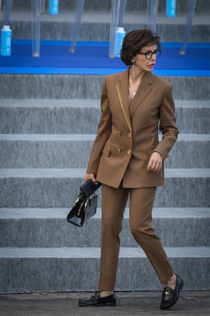 Pour participer à la célébration du 14 juillet, Rachida Dati a opté pour un style tailoring avec ce costume pantalon camel à la coupe impeccable. Le blazer croisé, orné de boutons dorés et d'un subtil détail de couture apparente sur le revers, apportait une allure à la fois classique et contemporaine. Elle l'avait associé à des mocassins noirs chics et sobres, accessoirisés d'un bijou doré discret. Sa pochette noire brillante ajoutait une touche de raffinement sans en faire trop. Une tenue parfaitement calibrée qui incarnait le pouvoir au féminin !