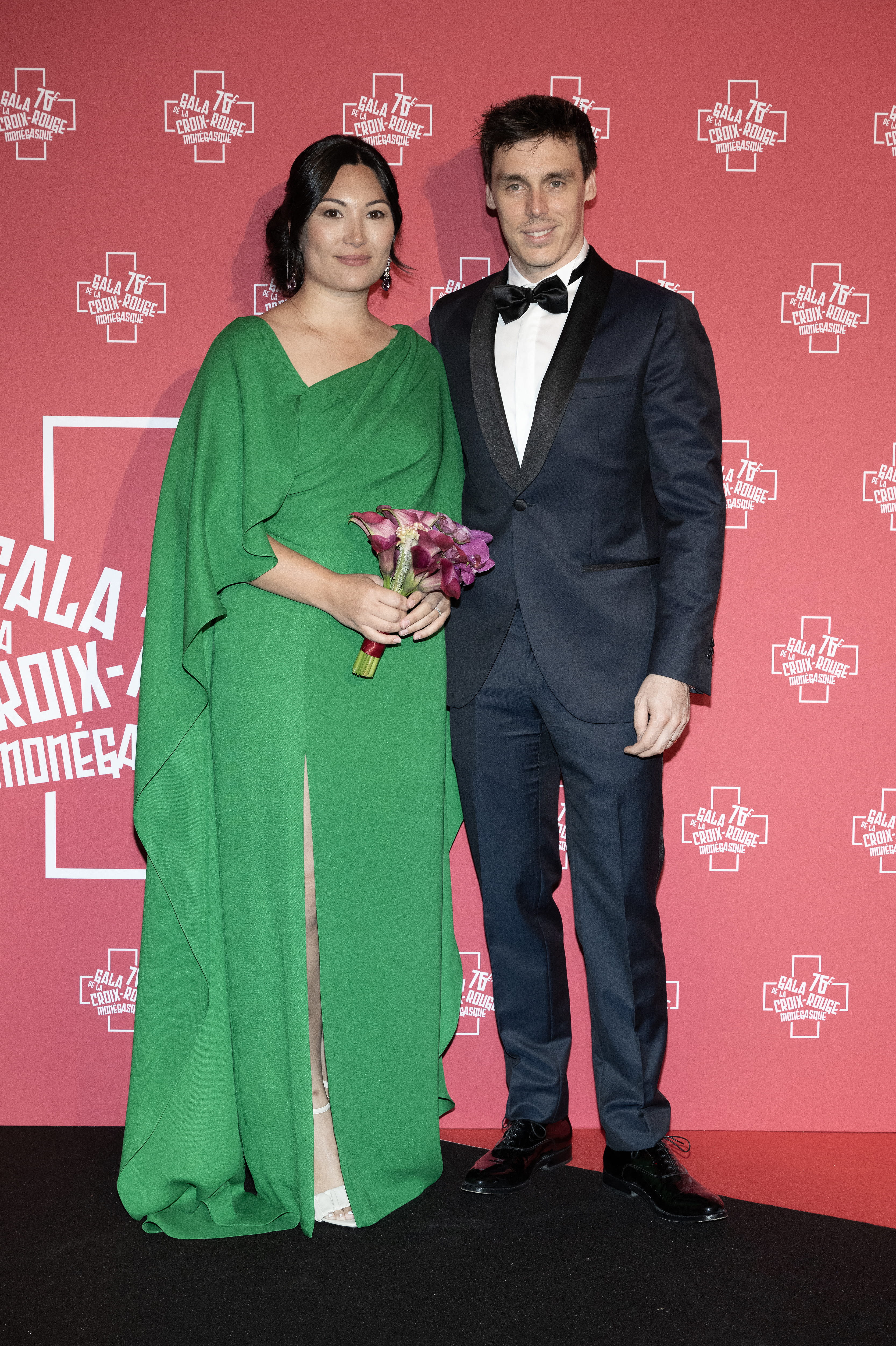 Lors du 76e gala de la Croix-Rouge, le couple monégasque était somptueux dans deux tenues harmonieuses. Louis Ducruet était vêtu d'un smoking bleu marine classique, agrémenté d'un nœud papillon noir et d'une chemise blanche immaculée. De son côté, Marie Ducruet portait une longue robe vert émeraude, caractérisée par un drapé fluide qui créait un effet de cape sur le côté. La robe présentait également une fente discrète sur le devant, ajoutant une touche de modernité. Elle tenait un petit bouquet de fleurs violettes dans les mains.