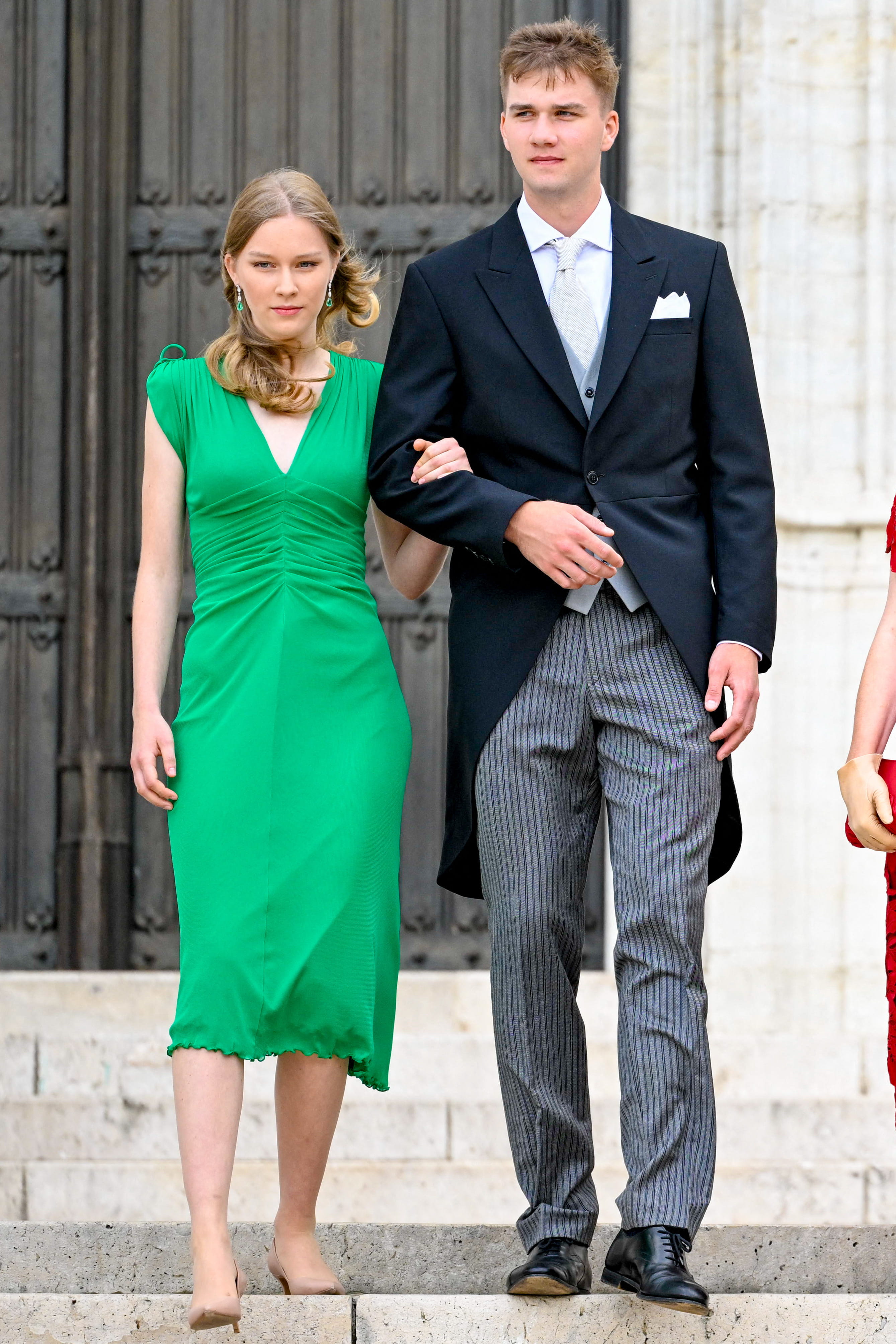 Eléonore de Belgique est ravissante avec les boucles d’oreilles en émeraude prêtées par sa mère © ABACA