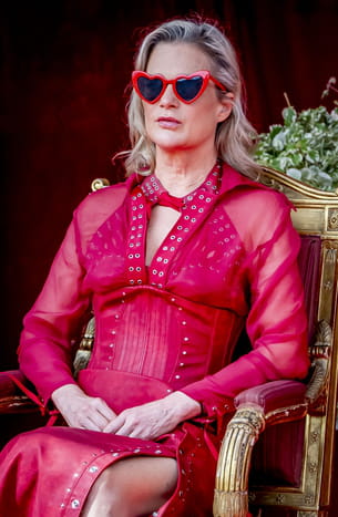 Ce lundi 21 juillet, Delphine de Belgique était au côté de la famille royale pour participer au traditionnel défilé militaire. Malgré l'événement particulièrement sérieux, la princesse a choisi une tenue surprenante. En effet, elle s'est installée en tribune, vêtue d'une longue robe rouge en cuir fendue jusqu'en haut de la cuisse. Elle était composée d'une chemise transparente à manches longues, ornée de petits anneaux métalliques et d'un corset assorti qui cintrait sa taille. La cerise sur le gâteau ? Sa paire de lunettes de soleil en forme de cœurs qui lui donnait 20 ans de moins.