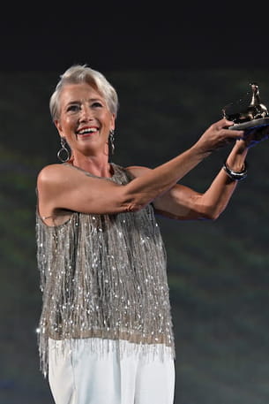 La 78e édition du festival de Locarno se tient du 6 au 16 août 2025 en Suisse. Il s'agit de l'occasion pour les stars de revêtir leurs plus belles tenues comme ce fut le cas pour Emma Thompson le 8 août dernier. L'actrice britannique a pris la pose, son prix à la main, dans un débardeur parsemé de franges et de paillettes qui dévoilait ses bras toniques. Elle couplait cette pièce hautement festive à un pantalon blanc à la coupe large et à des boucles d'oreilles pendantes en argent. Résultat : elle était à couper le souffle !