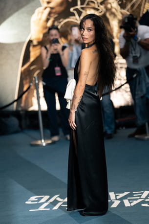 Pour l'avant-première anglaise de son nouveau film Caught Stealing, le 19 août dernier, l'actrice Zoe Kravitz était des plus renversantes. Elle a attiré tous les objectifs des photographes présents pour l'occasion en glissant sa silhouette dans une création sexy et glamour tombant jusqu'à ses pieds. Sa robe en satin noir signée Saint Laurent comportait un col licou, une fente latérale, un nœud blanc XXL et surtout un dos totalement nu. Une paire de mules en cuir se trouvait également aux pieds de la star de 36 ans afin de parfaire le look avec style.