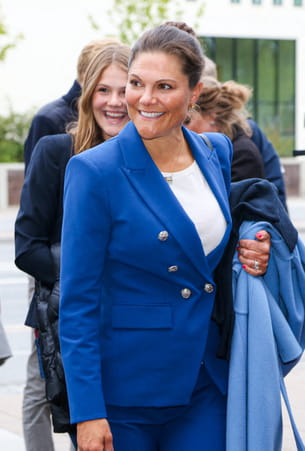 Le 27 août, la princesse héritière Victoria a assisté à un symposium au Stockholm Waterfront à l'occasion de la semaine mondiale de l'eau. Victoria de Suède avait adopté un look monochrome chic et élégant. Elle portait un tailleur-pantalon d'un bleu vif et lumineux. La veste à double boutonnage était ornée de boutons argentés et se fermait sur une blouse blanche à col rond. Du côté des accessoires, elle avait misé sur de discrètes boucles d'oreilles et un collier fin. Comme toujours, c'est un sans-faute pour la jolie brune !