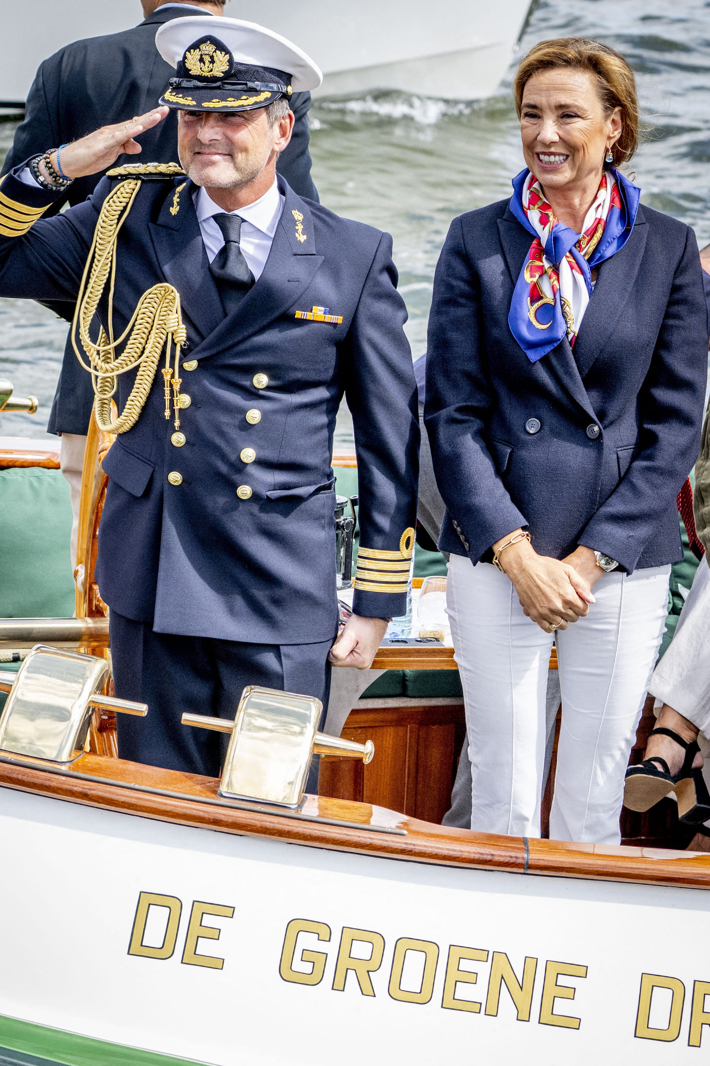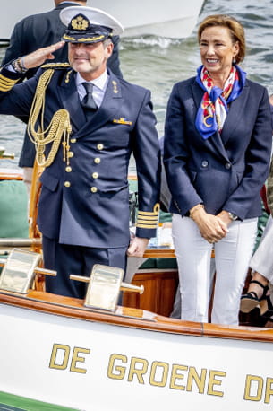 Pour son apparition au SAIL Amsterdam 2025, la princesse Marilène d'Orange-Nassau a tenu à porter une tenue de circonstance et adaptée à une sortie en mer. Elle a opté pour un blazer bleu marine à double boutonnage, qu'elle a associé à un pantalon blanc. Le blazer comportait un col à revers et des boutons dorés super chics. Un foulard à motifs colorés apportait une touche de dynamisme et de couleur à l'ensemble. Le tout était rehaussé d'une montre et de bijoux discrets. Une leçon de mode comme on les aime !