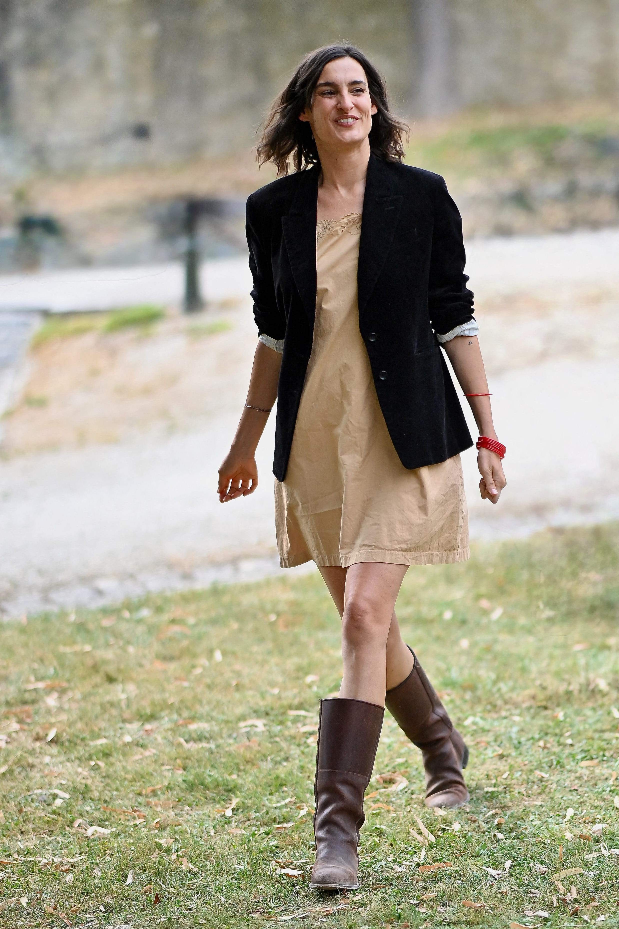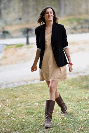 Au festival d'Angoulême, Nine d'Urso affichait un look simple et chic, mêlant des pièces de styles différents. Elle portait une robe courte de couleur beige avec un fin liseré de dentelle à l'encolure. Par-dessus, elle avait enfilé un blazer noir en velours côtelé, dont les manches étaient retroussées pour laisser apparaître ses avants-bras et ses différents bijoux. Des bottes montantes en cuir marron complétaient sa tenue féminine. Avec ce look, la jeune femme prouve qu'elle a autant de classe que sa mère.