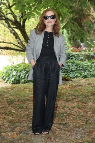 Isabelle Huppert a ouvert les festivités du Festival du film francophone d'Angoulême 2025 avec un look d'une élégance intemporelle. Elle a associé un blazer oversize gris, rappelant l'héritage masculin-féminin cher à Yves Saint Laurent, à un top noir à boutons dorés et un pantalon ample fluide. L'ensemble, sobre mais raffiné, jouait sur les volumes et la sobriété chromatique. Sandales discrètes, lunettes noires et lèvres rouges complétaient son style affirmé. Cette tenue reflétait parfaitement la singularité de l'actrice : un mélange de classicisme et de liberté moderne.