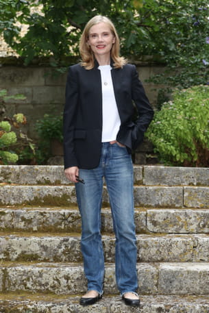 Pour assister au festival d'Angoulême, Isabelle Carré a jeté son dévolu sur un look intemporel, incarnant le style "casual chic" à la perfection. L'actrice portait une tenue simple mais efficace, composée d'un jean droit délavé, qu'elle avait associé à un T-shirt blanc. Pour rehausser le tout, elle avait enfilé un blazer noir structuré, qui donnait une touche sophistiquée à l'ensemble. Pour les chaussures, elle avait opté pour des ballerines noires, un choix classique et confortable. Ce style, idéal pour une apparition en journée, a prouvé que la star maîtrisait l'art de l'élégance sans effort.