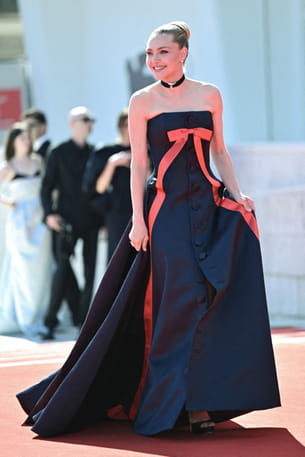 Présente à la Mostra de Venise, Amanda Seyfried a fait une apparition divine sur le tapis rouge. L'actrice portait une robe bustier qui lui donnait un air de princesse. La pièce était ornée de larges bandes de tissu rouge qui soulignaient sa taille à travers un nœud extravagant. Cette robe, à la fois sophistiquée et intemporelle, a marqué les esprits par sa classe incroyable. La star a également accessoirisé sa tenue avec un collier ras de cou noir et un maquillage léger. Amanda Seyfried, fidèle à son image naturelle, a de nouveau démontré son sens du style, à la fois simple et raffiné.