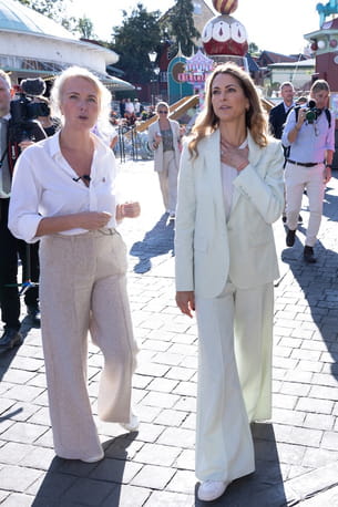 Madeleine de Suède s'est rendue au parc d'attractions Gröna Lund, ce dimanche 7 septembre, pour passer du temps avec les bénéficiaires de l'association Min Stora Dag. Elle était habillée pour l'occasion d'un ensemble de costume en lin de couleur vert pastel. Celui-ci se composait d'une veste de blazer classique, assortie d'un pantalon à la coupe flare. Pour compléter ce look alliant raffinement et fraîcheur, la princesse optait pour un top blanc cassé en maille légère et pour des baskets plates assorties. Sublime !
