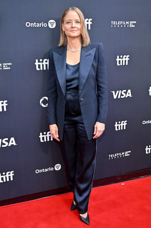 Jodie Foster a rayonné par son style à l'occasion de la projection du film A Private Life lors du Festival du film international de Toronto. Son look monochrome au zénith du chic se composait ainsi d'un long blazer bleu marine aux épaules exagérées, seyant parfaitement à sa silhouette, et d'un débardeur de la même nuance. Pour le bas, la sexagénaire a jeté son dévolu sur un pantalon satiné à la taille haute qui laissait apparaître une paire d'escarpins en cuir. Enfin, des bijoux argentés incrustés de diamants se dessinent comme LA touche finale de son allure.