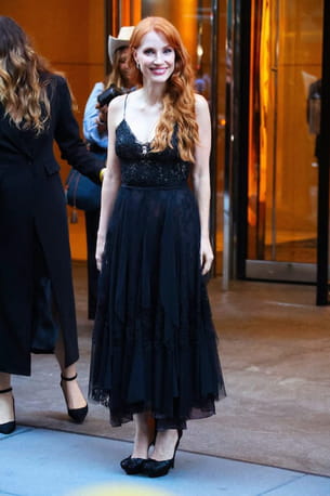 Jessica Chastain a fait une apparition remarquée lors du show de la maison Ralph Lauren, ce mercredi 10 septembre, qui présentait sa collection printemps-été 2026. Il faut dire que l'actrice portait une robe à tomber qui avait de quoi sublimer sa silhouette. La partie haute de celle-ci était agrémentée de dentelle noire et de fines bretelles alors que le bas prenait la forme d'une longue jupe en tulle. Une pièce féminine, mais élégante qu'elle avait assortie d'une paire de chaussures à talon haut de la même couleur.