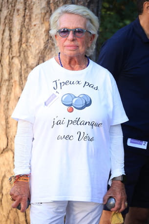 Le style de Véronique de Villele ? De la simplicité et de l'humour. Et l'ancienne animatrice de Gym Tonic l'a une nouvelle fois prouvé à l'occasion de la 9e édition du tournoi de pétanque Ne perdez pas la Boule qui se tenait à Paris le 18 septembre dernier. Elle est apparue avec un pantalon blanc et un top manches longues surmonté d'un tee-shirt à message qui disait "J'peux pas, j'ai pétanque avec Véro". Pour le reste, elle avait misé sur un collier bleu électrique et sur une paire de solaires aux verres fumés. De quoi faire sourire ses adversaires !