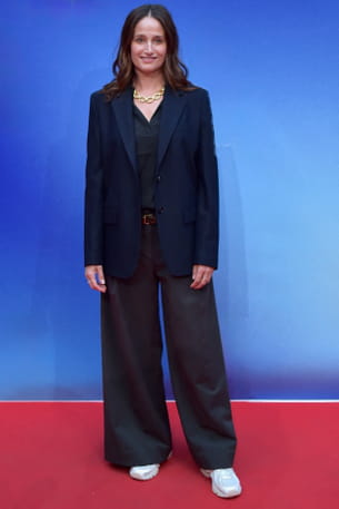 À La Rochelle, Marie Gillain a récemment démontré son sens aiguisé du style en adoptant une version modernisée et décontractée du power dressing. Elle a opté pour un ensemble chic et ample, jouant habilement sur les volumes. La comédienne a d'abord choisi un blazer bleu marine à la coupe oversize et aux épaules marquées, qui structurait l'ensemble de sa silhouette. Sous cette veste, elle portait une chemise fluide noir mais également un pantalon large et long gris foncé. Ce pantalon palazzo conférait une allure à la fois sophistiquée et extrêmement confortable. Aux pieds, elle portait une paire de baskets New Balance à la pointe de la tendance.