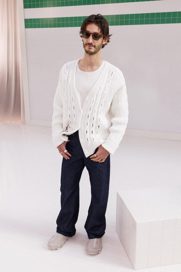 La présentation de la collection printemps-été 2026 de Lacoste a rassemblé de nombreuses célébrités ce dimanche 5 octobre, dont Pierre Niney. Pour l'occasion, le célèbre comédien de 36 ans est resté fidèle à son style décontracté avec une tenue simple : un tee-shirt blanc surmonté d'un cardigan immaculé à la maille trouée et accompagné d'un jean brut à la coupe large. Il avait également accessoirisé son look de la paire de baskets Gaitor Runway et de lunettes de soleil à la monture ronde. Une réussite mode !