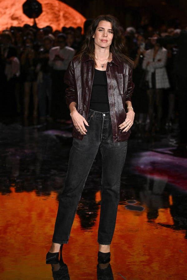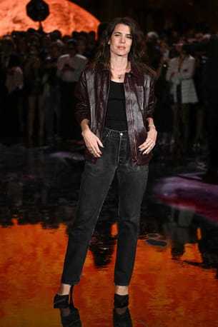 Le styliste Matthieu Blazy a présenté sa première collection pour Chanel ce lundi 6 octobre. Un défilé auquel Charlotte Casiraghi ne pouvait manquer, étant l'une des égéries de la maison française. Elle a ainsi pris la pose dans un look noir et bordeaux qui associait un jean droit à la taille haute à une veste en cuir matelassée, enfilée au-dessus d'un simple débardeur. À ses pieds ? Une paire d'escarpins noirs à bout pointu. La fille de la princesse Caroline de Monaco a également complété son look avec une accumulation de bagues à ses doigts.